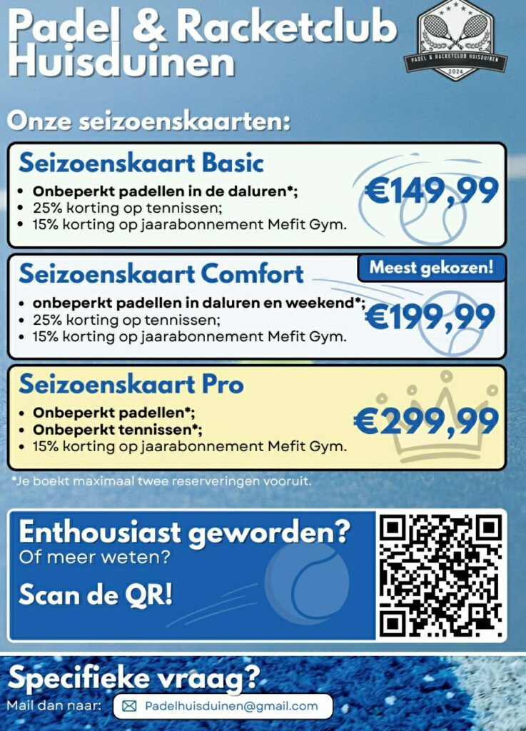 Onbeperkt padellen vanaf € 149,99.